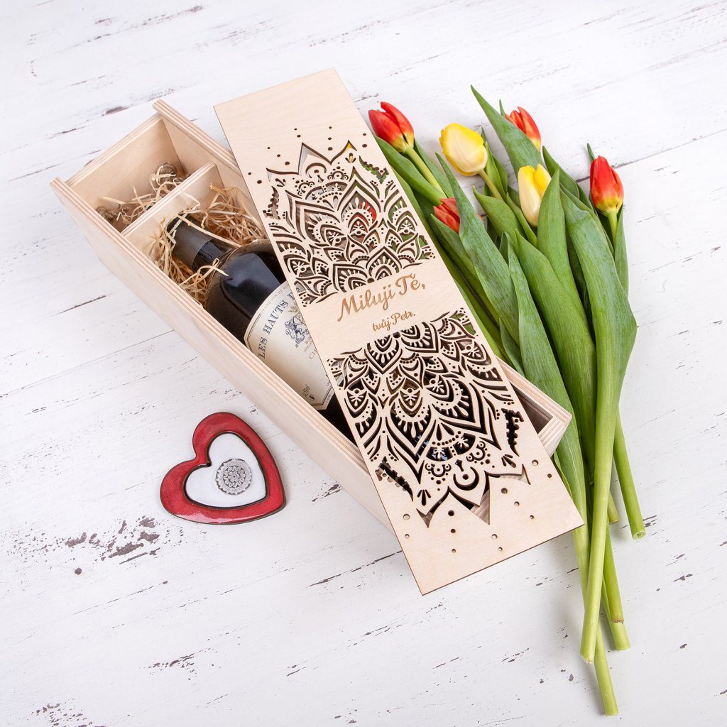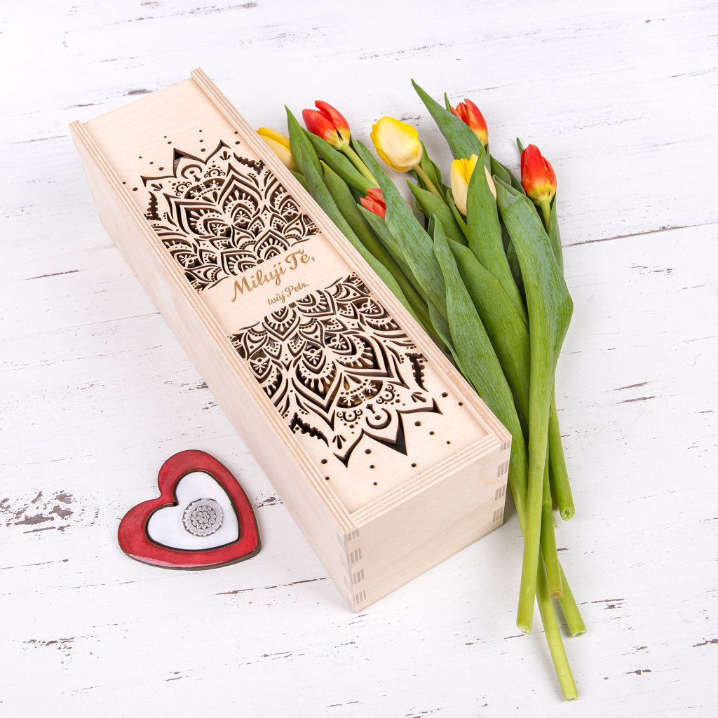 Drevený box na víno: Milujem ťa